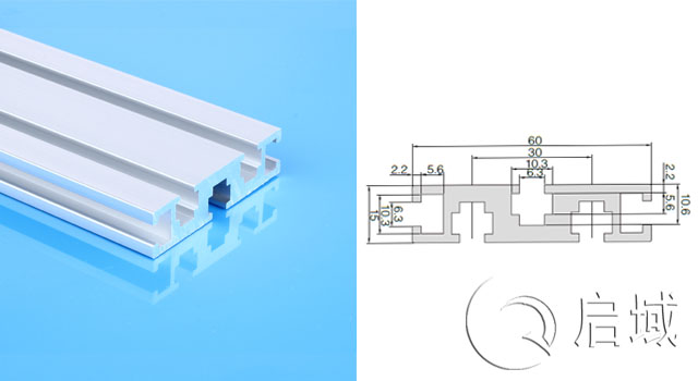 國標(biāo)1560鋁型材米重1.55kg/m,貨號:QY-6-1560G(15*60國標(biāo)型材,槽6系列),這款鋁型材常適用于輕型結(jié)構(gòu)的框架組合。如機(jī)罩、儀器機(jī)架、展示欄等,簡潔而又高雅,常用于做臺面。配套的螺栓螺母通常采用對邊為10mm的M5、M6四方螺母與高強(qiáng)度圓柱頭內(nèi)六角螺栓連接方式,或10F系列T形螺母與圓柱頭內(nèi)六角螺栓,也可采用10F系列T形螺栓與法蘭螺母連接。國標(biāo)1560鋁型材60雙槽面可安裝6060角件。