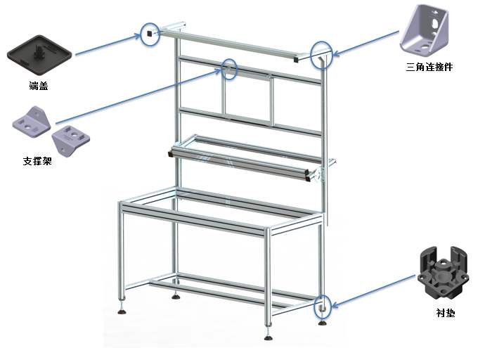 流水線支架是常用的一種,主要用于自動化流水線工廠中,像電子廠,半導(dǎo)體工廠,化妝品工廠,食品廠,家電裝配廠,摩托車汽車制造廠等等,皆會用到流水線輸送線。鋁合金型材具有比較好的承重力,不用焊接,也不用涂油漆,組裝簡單便捷,利于后期工廠改造。下圖就是我們?yōu)榭蛻舳ㄖ频牧魉€支架。需要注意的是,流水線支架上需要安裝各種生產(chǎn)工具,才可以投入使用。